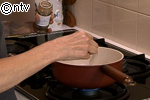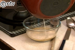 卵黄と砂糖を良く混ぜ、そこに温めた牛乳を加えます。
