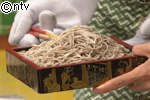 茹でたそばを液体窒素に入れると、元の乾麺に戻ったような状態になります。