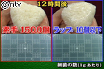 素手で握るのとラップに包んで握るのでは、発生する細菌の数が違います。1年の室温の平均気温・約25℃の環境でおにぎりを保存し、12時間後になると、ラップのおにぎりは細菌が10個以下なのに対して素手のおにぎりは1500個ほどになっています。1500個ほどの細菌なら食べても支障はありませんが、夏などはここから急速に細菌の数が増えるので、どちらにしろ12時間以内には食べた方がいいでしょう。