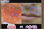 普段は出て来ることのない神経の中にあるウィルスが、免疫力の低下により、体の外に出て水疱が発生し、口内炎やヘルペスとなります。予防には、一番に寝ること。そして適度な運動をしてストレスをためないことが重要です。
