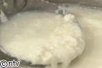 かき混ぜ続けだんだんと固まってきたら、ガーゼでこします。