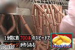 1秒間に約5本のペースでソーセージに串が刺されます。