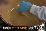 45分混ぜ続けるとキャラメルの色に変わってくる。