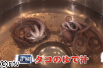 これは韓国の釜山で行われている知恵袋です。タコにはタウリンという成分が多く含まれていて、肝機能の向上や高血圧などに効果があると言われています。また、韓国の古い文献で牛はタコを食べると死んでしまうという風に伝えられていることから、タコは牛を殺す力を持っているというふうに思われていたようです。かつては高級料亭に行くとタコのゆで汁が用意されていたようです。