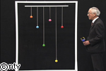 紐で吊るした6つのボール。赤いボールを揺らすと他の玉はどうなる?