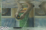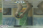空気砲を水中で泡に向かって撃つと丸く空気の輪ができます。