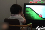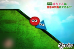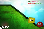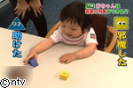 赤ちゃんに赤くて丸い玉が坂を登ろうとしている場面を見せて、その後三角がそれを助ける場面と、四角がそれを邪魔する場面を見せました。