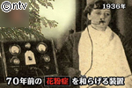 薬剤の染みた綿を鼻の中に詰めて綿と手首に電極を接続します。弱い電流を流して鼻を麻痺させるという1936年のアメリカの花粉症治療装置です。