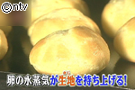 材料である卵白は約88%が水分でできています。そして水は水蒸気になると体積が約1700倍になります。シュークリームを焼く時に卵に含まれる水分が水蒸気となり生地を持ち上げるのです。