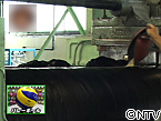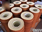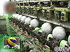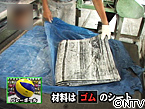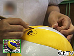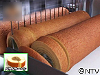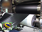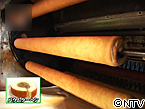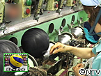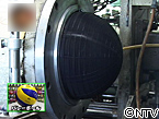 1) 材料はゴムのシート 2) 硫黄を混ぜながらローラーで伸ばしていきます。 硫黄を加えることで柔軟なゴムになります。 3) さらにローラーで厚さが1ミリになるまで伸ばします。 4) ゴムをつないで空気を入れ、熱を加えて丸い形にします。 5) 1個につき、約2700メートルの糸を巻いていきます。 6) ボールの表面の皮の型を取って切り抜き、貼付けていきます。
