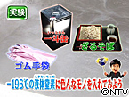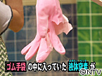<ゴム手袋> 軽く膨らまして液体窒素に入れたゴム手袋は、超低温で冷やされることで弾力が無くなってしまい、強く握ると割れてしまいます。
