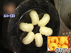 水を加えて圧力をかけ140℃の熱を発生させて 機械で押し出す