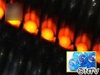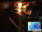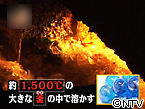 1500℃の大きな釜の中で溶かす。 この時に銅を混ぜ色を付ける