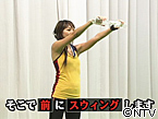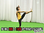 片足立ちバンザイ 片足で立ち、もう片方の足でロックします。傘を両手で持って前屈し、床につく方はつけて、そこから傘をできるだけ遠くに伸ばしながらバンザイをしていきます。前足になっているひざは曲げないようにしてください。 |
