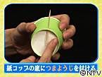 コップの中に大きな声を出し続けると、 プロペラが回転します。