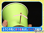 紙コップの底、側面に爪楊枝を刺し、 セロテープで固定します。