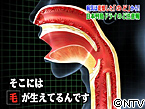 鼻やのどの空気の通り道には 直径が1/1000ミリほどの毛が生えています。 この毛は1秒間に約15回という速さで動いていて、 のどの表面に分泌される粘液に流れを作り出しています。 普通ウィルスや菌はこの流れによって体の外に追い出されていきます。