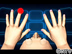 腕をのばして両手を広げ、 顔を動かさずに自分の指先を眼で追います。