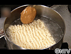 麺を茹でるときに、大さじ1杯半のピーナッツバターを入れてよく溶かします。あとは普通のインスタントラーメンと同じ。担々麺のようなコクがになります。