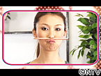 その状態で口を割り箸に沿って開いて上げ、 眉毛を上げます。