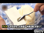 使うのは低カロリーで栄養価の高いお豆腐。 アイスに水気を切った同量の木綿豆腐を加えてよく混ぜるだけです。これでとてもサッパリした新食感のアイスが出来上がります。普通のアイスに比べて約40%近くもカロリーを減らすことができます。