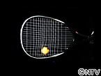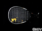 テニスのラケットにぶつけると、 ピンポン球はところてんのようにちぎれてガットを通過しました。