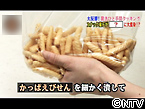 かっぱえびせんを細かく潰して牛乳を加えよく混ぜ、お好みでネギを加えます。 それを裏返した油揚げに入れて、 爪楊枝で入り口をとめてきつね色になるまで油で揚げます。 これでかっぱえびせんクリームコロッケができあがります。