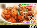 ・ 最後にピーマンを加えて煮ていくと酢豚風酢鶏の出来上がりです。