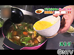 ・ スープに片栗粉を加えて熱しながら、そこに長ネギと溶き卵を入れ、ラー油も加えます。
