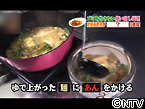 ・ ゆであがった麺にあんをかければサンラータン麺のできあがりです。