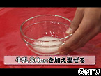 まずマシュマロに水20ccを加え、600Wの電子レンジで約2分加熱します。 するとマシュマロが液体になるのでそこに牛乳80ccを加えて混ぜ、 アーモンドエッセンスを10滴加えてさらに混ぜます。