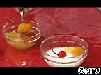 それを冷蔵庫で約1時間半冷やすと、杏仁豆腐の出来上がりです。 フルーツを乗せて召し上がって下さい。