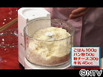 材料全てをフードプロセッサーにかけます。 ミキサーでやる場合は事前に良くかき混ぜてからにしましょう。 ご飯は温かい方がいいです。