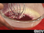 すると混ざったホットケーキミックスは紫イモの紫色になります。 しかしフライパンで焼くと青色になり、ハチミツとレモンのシロップをかけると、 シロップがかかった部分はピンク色になります。