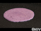 ホットケーキミックスに紫イモの粉を混ぜて焼きます。