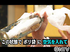 ポリ袋を細く潰してビンの底まで入れ、 コルクをビンの口の方まで近づけます。 その状態でポリ袋に空気を入れ、 いっぱいに入ったところで 袋をねじって空気が逃げないようにし、 引き抜くとコルクも一緒に抜けます。