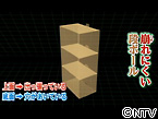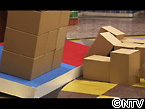 このダンボール箱の底面には穴があいていて、 上面には出っ張りがついています。 これを組み合わせて重ねることができ、 崩れにくくなっています。