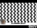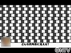濃いグレーの四角と白い四角がズレて並んでいるんですが、 そのズレが横線と影響し合って錯覚してしまいます。