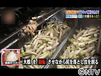 まずは機械で大根を回転させながら泥を落とし、 綺麗になった大根の皮を手作業で削ります。 その後、高速回転する機械で千切りにされ、 冷水で洗った後乾燥させてツマが出来上がります。