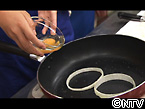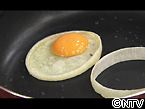 玉ねぎを厚さ1cm程度の輪切りにして 一番外側の大きな輪を外します。 先にフライパンに玉ねぎを置いて その輪の中に卵を落し入れて焼きます。