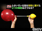 大きく膨らませた風船と小さく膨らませた風船を繋ぎました。 A. 小さい風船はしぼみ、大きい風船がさらに大きくなる |