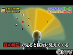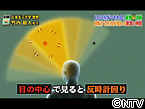 真ん中の点をよく見てください。すると周囲の黄色い点が消えてしまうという錯覚が起きます。これは、くっきり見える青い格子が回転することで、そこに注意が行ってしまっている為だと思われます。