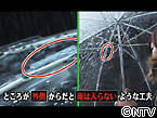 小泉元首相が選挙運動の際に使用していた高級ビニール傘。骨の部分には釣り竿に使われるグラスファイバーが使われており、外から衝撃を与えても簡単には折れません。さらに、強い風でもひっくり返らないように穴が開いていて内側からは空気が逃げ、しかし外側から雨が入らないような仕組みになっています。
