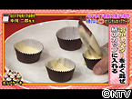 <作り方> ・ 卵(1個)と牛乳(150cc)を混ぜ、ホットケーキの素(200g)を入れる ・ 溶かしバター(20g)を入れ、よく混ぜる ・ 紙のカップに入れ、600Wの電子レンジで約1分加熱する ・ チョコレートやフルーツなどでトッピングをする