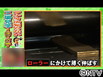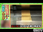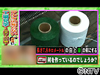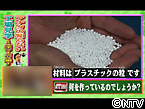 ・ 材料はプラスチックの粒。 ・ 溶かしてフィルム状する ・ 細く切って長さ7.8キロメートルの白と緑の紐にする ・ 紐には編み目の切れ込みが入ってる ・ 紐を織り込む ・ 織目をコーティングして完成