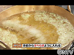 <作り方> ・ 冷水に卵黄を混ぜ、冷やした小麦粉を入れ、混ぜる (冷やしたものを使うことで衣がカラッと仕上がります) ・ ごく少量のベーキングパウダーを加え、混ぜる (衣の水分が蒸発してパリッとした食感になります) ・ 最後に抹茶を加え、混ぜる ・ 衣をたっぷり付けて油に手前から滑らすように入れる (滑らすように入れることで衣に凹凸ができやすくなります)