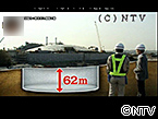 都市ガスは気体だと液体に比べ 600倍の大きさになってしまいますので 液体で運んでいます。 その液体を貯蔵するのに 横浜市扇島の地下62メートル (20階建てのビルの高さと同じ)に 直径72メートルのタンクが作られています。 貯蔵量は一般家庭36万軒が使用する1年分です。 壁も床もステンレスで覆われていて、 魔法瓶のような構造で 温度が上がらないようにしてあります。