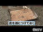 1.臭みを取るために鶏の皮を酒に漬ける
