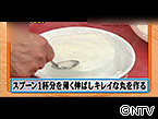 5.皿にラップを張り、その上でスプーン1杯分を円形に薄く伸ばす