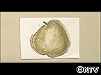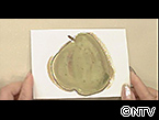 水とティッシュを使って立体感を出す 例えばこの「洋なし」の画も… 筆を使って水をたくさん塗って、 乾く前にテッィシュでふき、 絵の具を抜くと… 梨に丸みが出るのです。